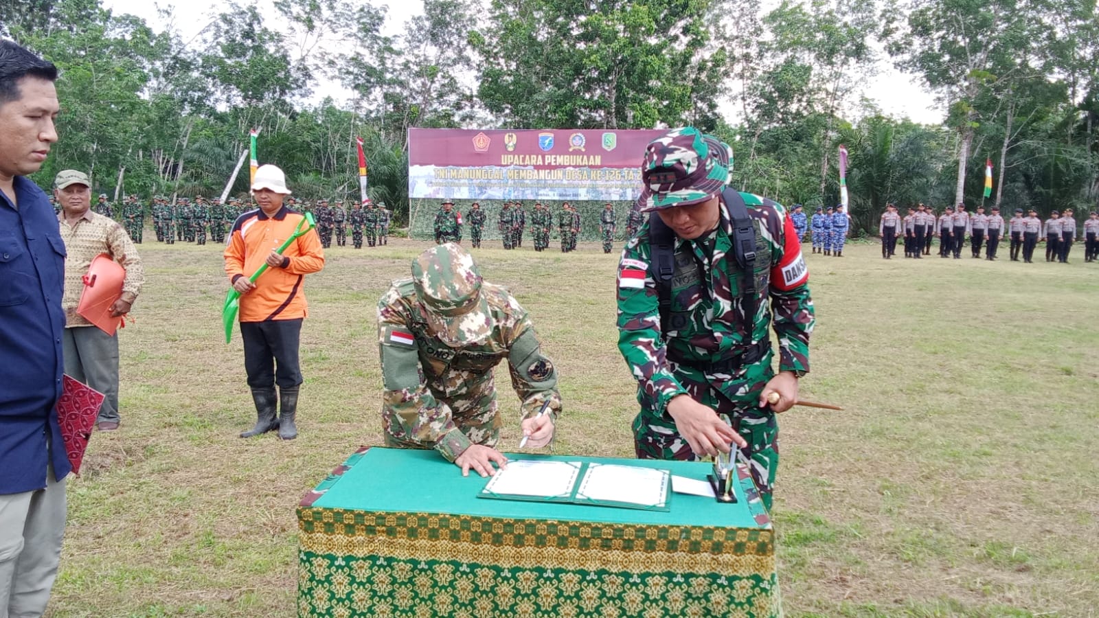 Kolonel Inf Neggy Kuntagina, S.I.P., jajaran Forkopimda Kabupaten Sambas, tokoh masyarakat, Tokoh Agama, serta warga Desa setempat.