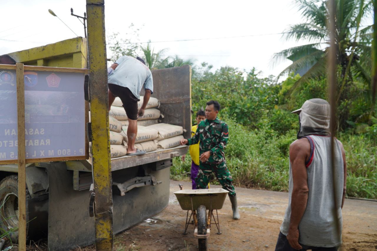 Sambas – Kebersamaan antara TNI dan masyarakat kembali terlihat dalam kegiatan TNI Manunggal Membangun Desa (TMMD) Regtas ke-126 Kodim 1208/Sambas. Anggota Satgas TMMD bersama warga bergotong-royong mengangkat material berupa semen yang akan digunakan untuk pembangunan sasaran fisik di Desa lokasi kegiatan, Sabtu (11/10/25).