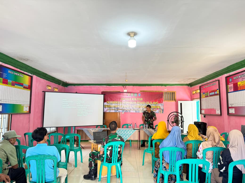 Pandeglang – Dalam rangka kegiatan TNI Manunggal Membangun Desa (TMMD) Ke-126 Tahun 2025, Kapten Inf Tata selaku Danramil 0106/Menes memberikan penyuluhan bela negara kepada masyarakat Desa Cikentrung, Kecamatan Cadasari, Kabupaten Pandeglang. Kegiatan penyuluhan ini berlangsung di Balai Desa Cikentrung, dengan dihadiri oleh perangkat desa, tokoh masyarakat, tokoh agama, dan warga setempat, Rabu (15/10/2025).
