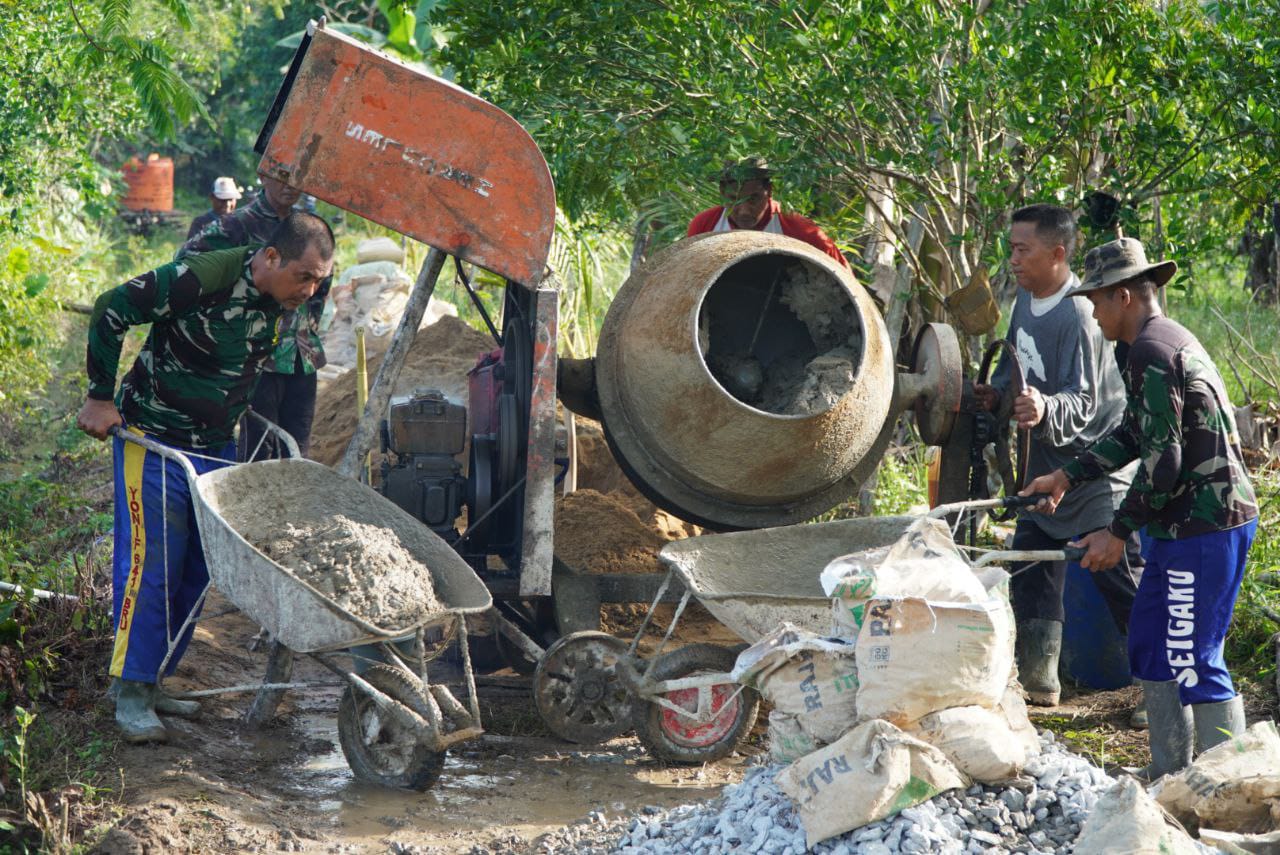 Sambas – Keberadaan mesin molen dalam pelaksanaan TNI Manunggal Membangun Desa (TMMD) Reguler perbatasan ke-126 Kodim 1208/Sambas membawa dampak besar terhadap percepatan pembangunan sasaran fisik di Desa Ratub Sepudak, Kecamatan Galing, Jumat (17/10/2025).