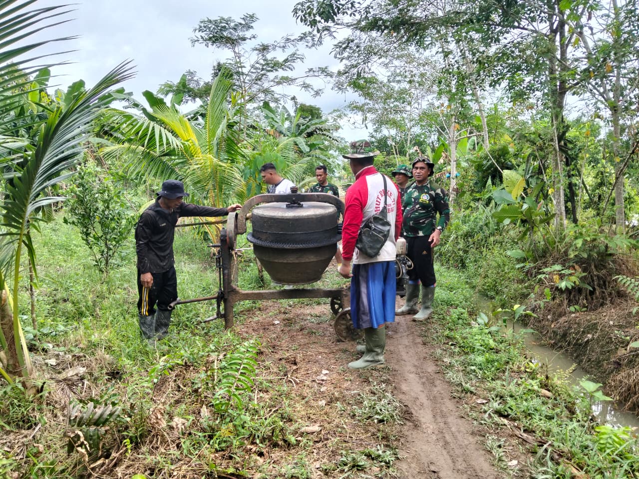 Sambas – Dalam rangka memperlancar proses pembangunan infrastruktur desa, Satgas TMMD Reguler ke-126 Kodim 1208/Sambas memindahkan mesin molen ke titik pekerjaan baru di lokasi kegiatan TMMD, Jumat (17/10/2025).