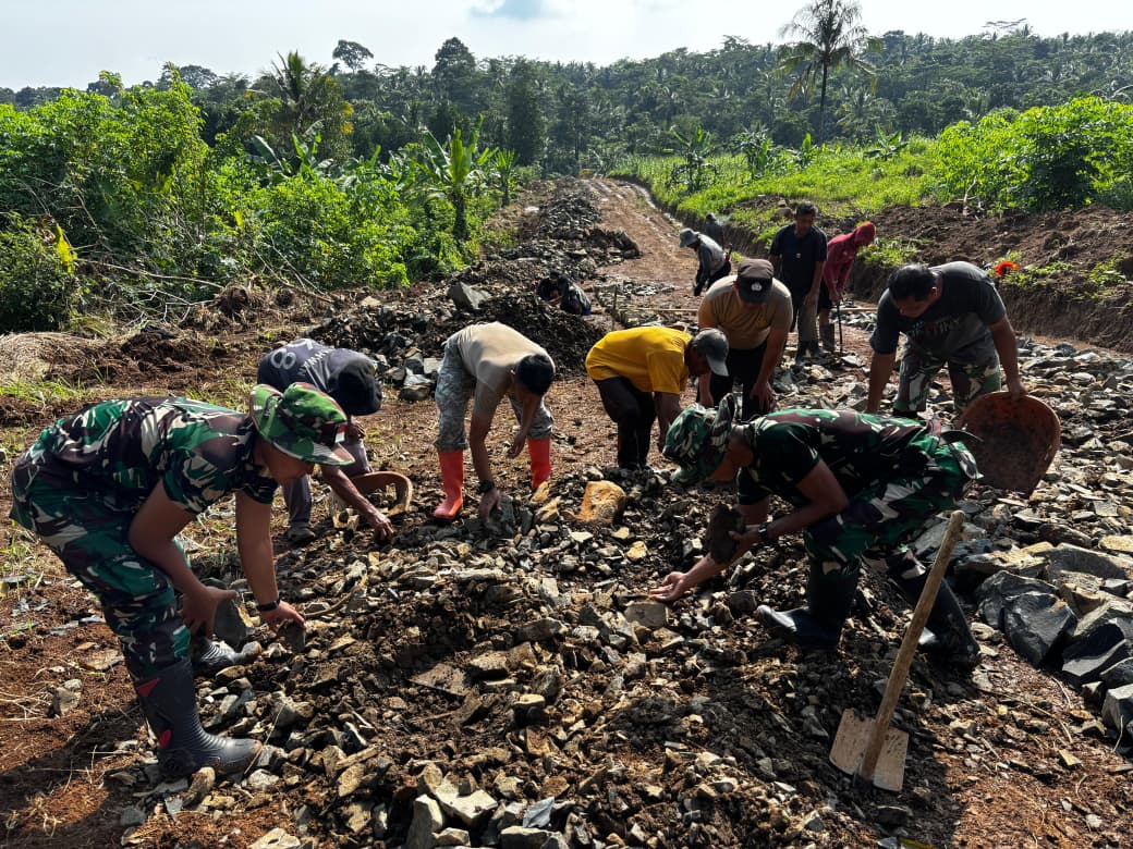 Di bawah terik matahari, para prajurit TNI bersama warga bahu membahu mengangkut batu, meratakan badan jalan, dan menata material pengerasan dengan penuh semangat. Mereka tidak hanya bekerja membangun infrastruktur, tetapi juga menumbuhkan kembali semangat gotong royong dan kebersamaan yang menjadi ciri khas bangsa Indonesia.