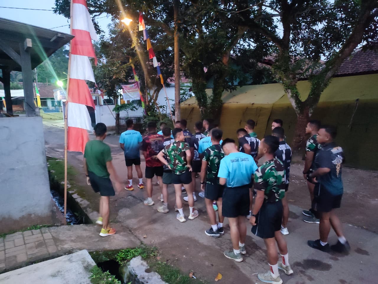 Kegiatan senam pagi ini diikuti oleh seluruh anggota Satgas TMMD yang terdiri dari personel TNI, Polri, serta masyarakat yang turut membantu pelaksanaan program pembangunan desa. Dengan penuh semangat, para peserta melakukan berbagai gerakan peregangan dan latihan fisik ringan yang bertujuan untuk menjaga kondisi tubuh tetap prima serta mencegah kelelahan selama melaksanakan tugas di lapangan.