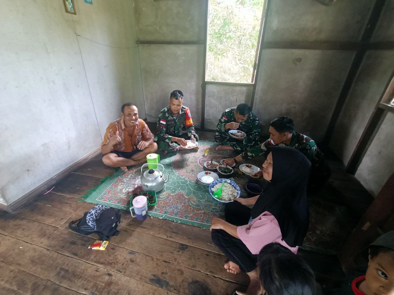 “Kami sangat senang, Pak Tentara mau makan bareng kami. Rasanya seperti keluarga sendiri,” ujar salah satu warga sambil tersenyum. (Pendim 1208/Sambas).