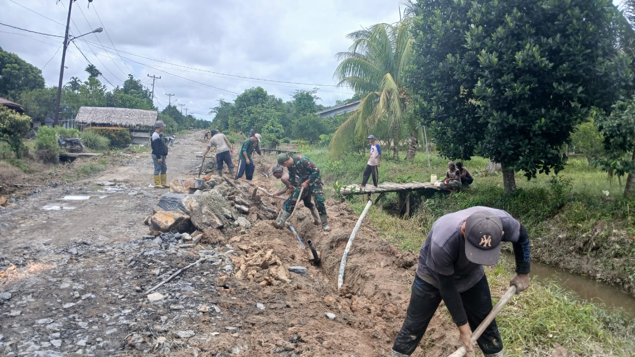 Sambas – Satgas TNI Manunggal Membangun Desa (TMMD) ke-126 Kodim 1208/Sambas terus menunjukkan komitmennya dalam mendukung pembangunan infrastruktur desa. Kali ini, Satgas melaksanakan kegiatan penggalian tanah untuk pemasangan paralon PDAM di Desa Ratu Sepudak, Kecamatan Galing, Kabupaten Sambas, Kamis (23/10/2025).