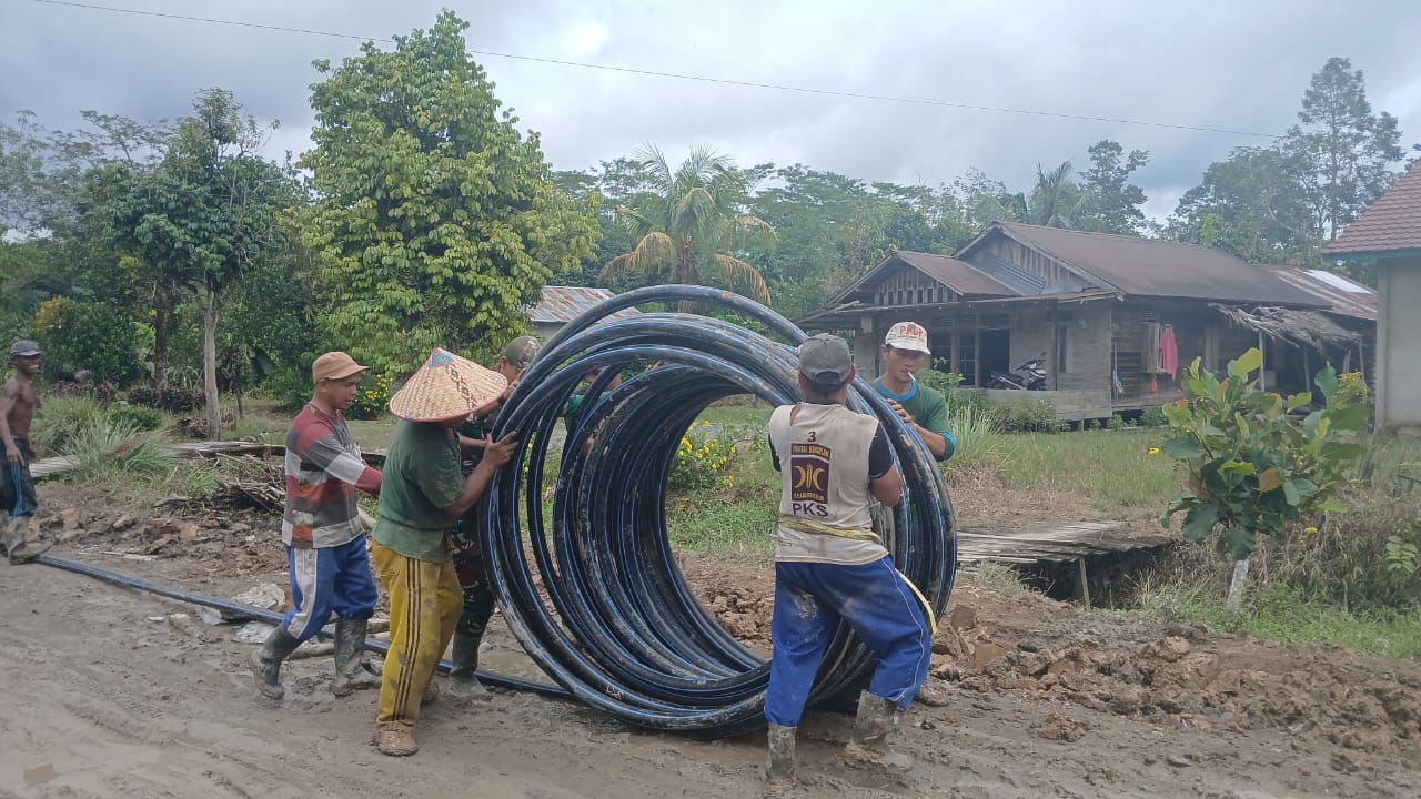 Pemasangan paralon ini menjadi langkah penting dalam memperlancar saluran air bersih dari sumber utama menuju pemukiman warga. Dengan semakin dekatnya jaringan air ke rumah-rumah penduduk, diharapkan kebutuhan air bersih masyarakat segera terpenuhi.