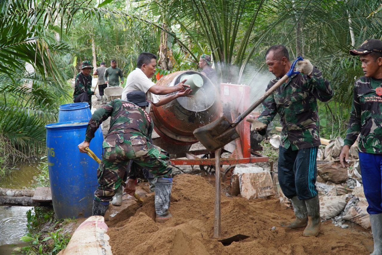 Sambas – Teriknya sinar matahari tidak menyurutkan semangat Satgas TNI Manunggal Membangun Desa (TMMD) ke-126 Kodim 1208/Sambas dalam melanjutkan pengerjaan sasaran fisik Rabat Beton di Desa Ratu Sepudak, Kecamatan Galing, Kabupaten Sambas, Minggu (26/10/2025).