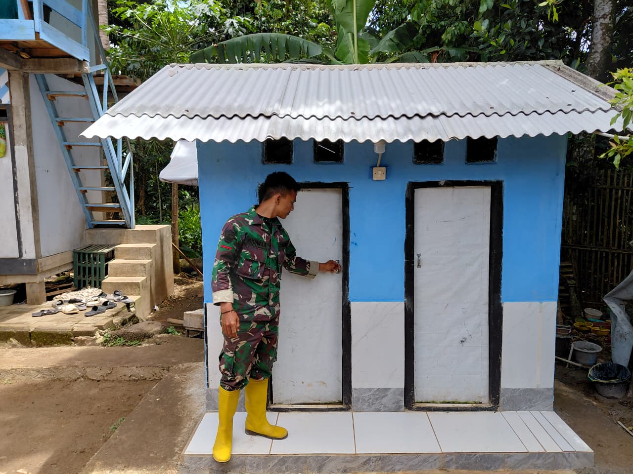 Dalam foto terlihat salah satu anggota Satgas TMMD sedang melakukan pengecekan hasil akhir bangunan MCK yang telah berdiri kokoh dan rapi. Pengecekan ini dilakukan sebagai bagian dari proses pengawasan kualitas bangunan agar hasil kerja dapat dimanfaatkan dengan baik oleh masyarakat.