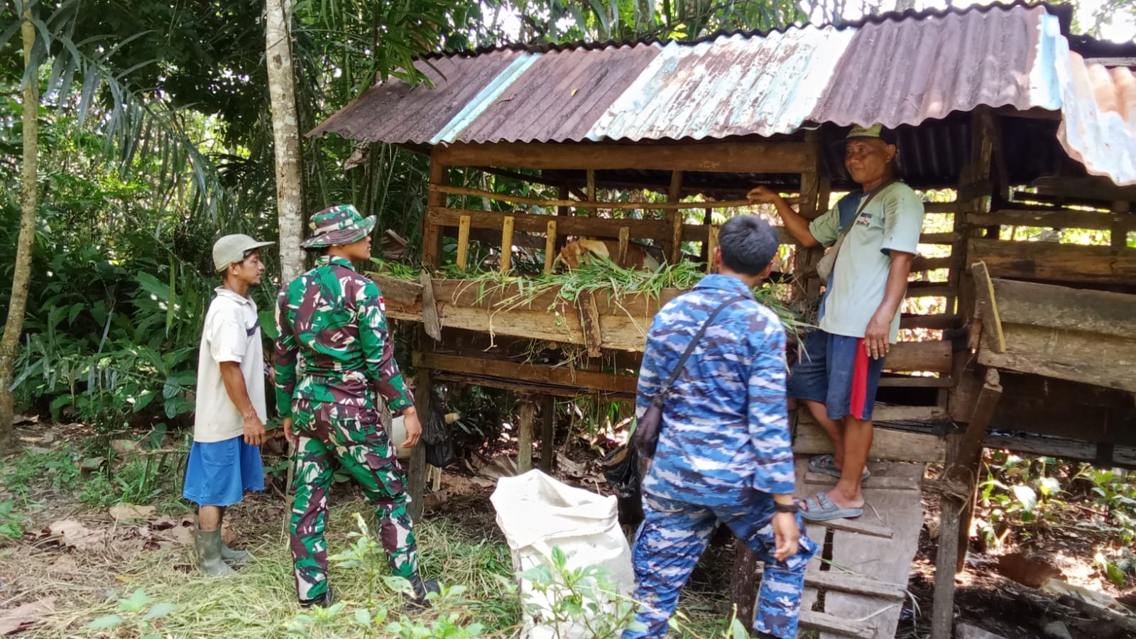 Sambas – Keakraban antara Satgas TNI Manunggal Membangun Desa (TMMD) ke-126 Kodim 1208/Sambas bersama warga Desa Ratu Sepudak terus terjalin dengan baik. Salah satu wujudnya terlihat ketika anggota Satgas turut membantu warga memberi makan ternak di sela-sela waktu istirahat dari pengerjaan sasaran fisik, Rabu (29/10/2025).