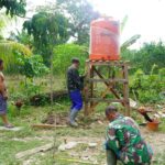 Selain personel TNI, warga desa juga turut berpartisipasi aktif dalam proses pembangunan tower air tersebut. Gotong royong dan kebersamaan antara Satgas TMMD dan masyarakat menjadi cerminan nyata semangat kemanunggalan TNI dengan rakyat.