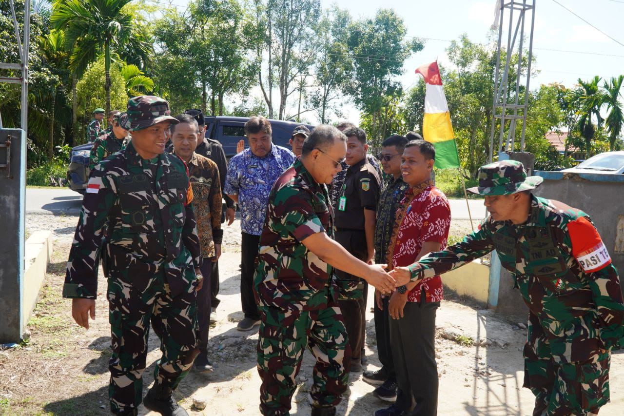 Sambas – Forkopimda Kabupaten Sambas menyambut kedatangan Tim Pengawasan dan Evaluasi (Wasev) Tentara Manunggal Membangun Desa (TMMD) Reguler ke-126 Kodim 1208/Sambas yang dipimpin oleh Paban II Minpuan Sterad di Desa Ratu Sepudak, Kecamatan Galing, Kabupaten Sambas.