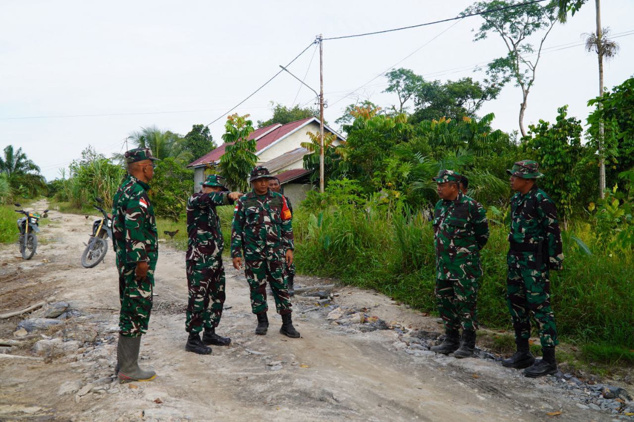 Sambas – Kasiter Kasrem 121/Abw meninjau langsung progres pengerjaan penimbunan jalan sepanjang 2.000 meter yang menjadi salah satu sasaran fisik program TNI Manunggal Membangun Desa (TMMD) Reguler ke-126 Kodim 1208/Sambas di Desa Ratu Sepudak, Kecamatan Galing, Kabupaten Sambas.