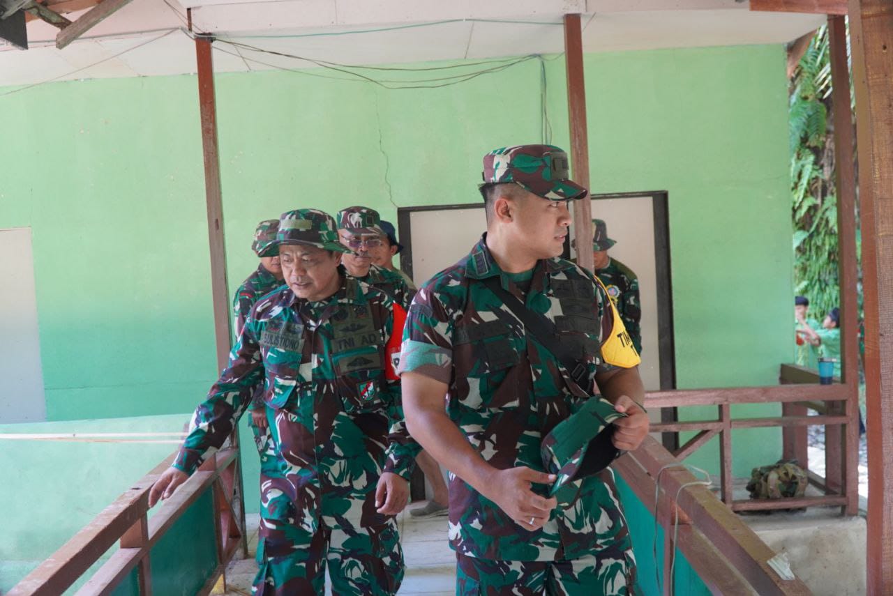 Sambas – Tim Pengawasan dan Evaluasi (Wasev) dari Staf Teritorial Angkatan Darat (Sterad) meninjau hasil pembangunan MCK (Mandi, Cuci, Kakus) di salah satu sekolahan yang menjadi sasaran fisik program TNI Manunggal Membangun Desa (TMMD) Reguler ke-126 Kodim 1208/Sambas.