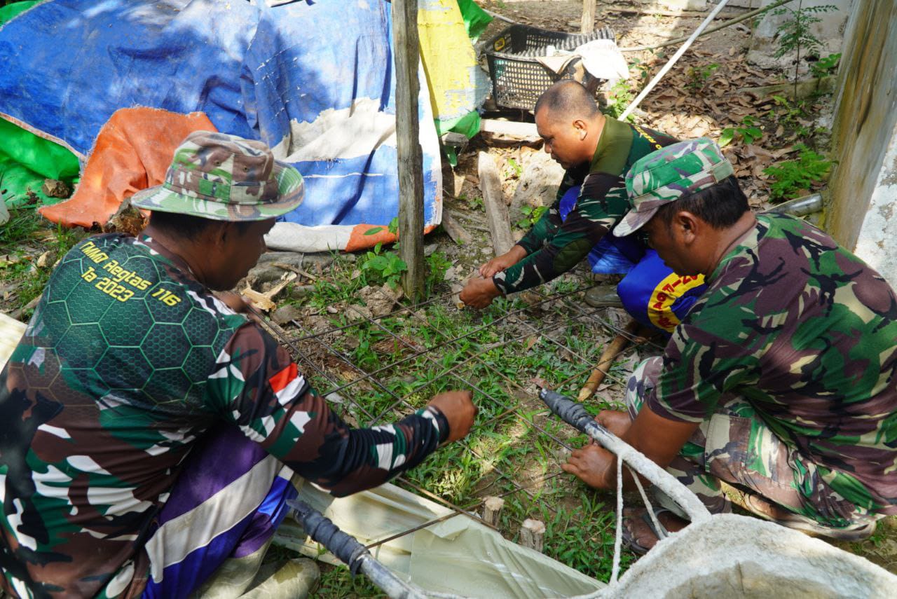 Satgas TMMD ke-126 Kodim 1208/Sambas Rangkai Besi untuk Perkuat Bangunan Rabat Beton
