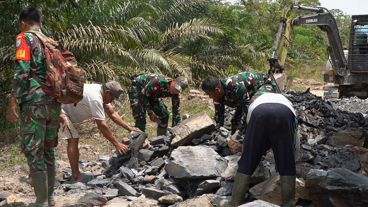 Sambas – Satgas TNI Manunggal Membangun Desa (TMMD) Reguler ke-126 Kodim 1208/Sambas terus berupaya menuntaskan sasaran fisik berupa pembangunan jalan sepanjang 2000 meter di Desa Ratu Sepudak, Kecamatan Galing, Kabupaten Sambas.