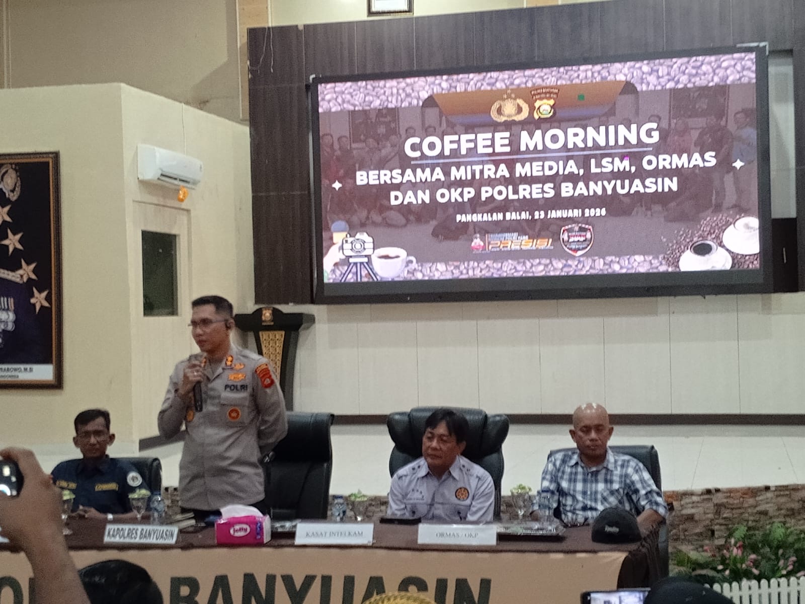 Hal tersebut disampaikan Kapolres saat menggelar silaturahmi bersama insan pers, organisasi kemasyarakatan (Ormas), organisasi kepemudaan (OKP), serta lembaga swadaya masyarakat (LSM) di Aula Polres Banyuasin, Jumat (23/01/2026).