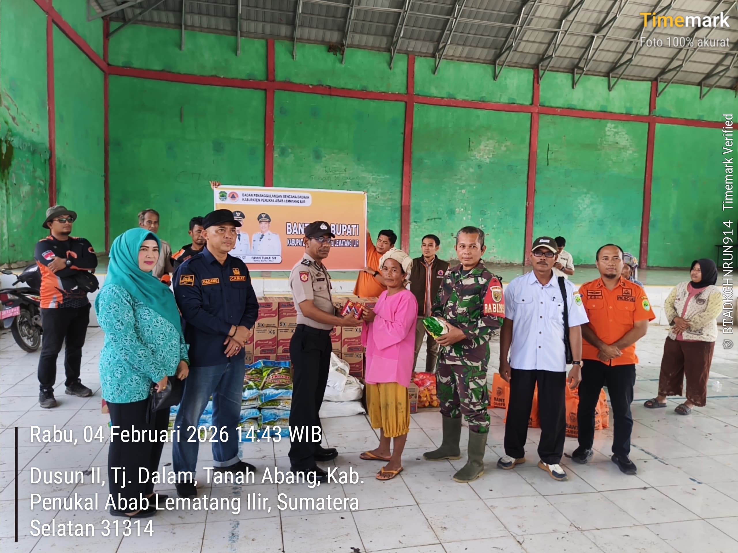 Penyaluran bantuan dipusatkan di kantor desa masing-masing dan dikawal langsung oleh Kapolsek Tanah Abang AKP Arzuan, S.H, bersama BPBD Kabupaten PALI, unsur kecamatan, TNI, perangkat desa, serta insan pers.