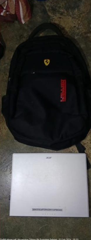 Dari tangan para pelaku, polisi mengamankan barang bukti berupa satu unit laptop Acer warna silver bertuliskan inventaris sekolah serta satu tas ransel hitam yang digunakan untuk membawa barang tersebut.