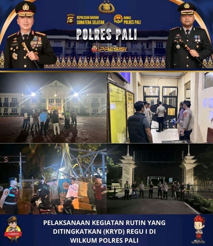 Tim KRYD Regu I menyisir sejumlah titik rawan, antara lain kawasan Jalan Handayani Mulya, Komplek Pertamina PALI, serta wilayah Sumberjo. Selain patroli mobile, personel juga melakukan pengecekan tahanan di Rutan Polres serta siaga di Mako sebagai langkah antisipatif terhadap kejadian menonjol.