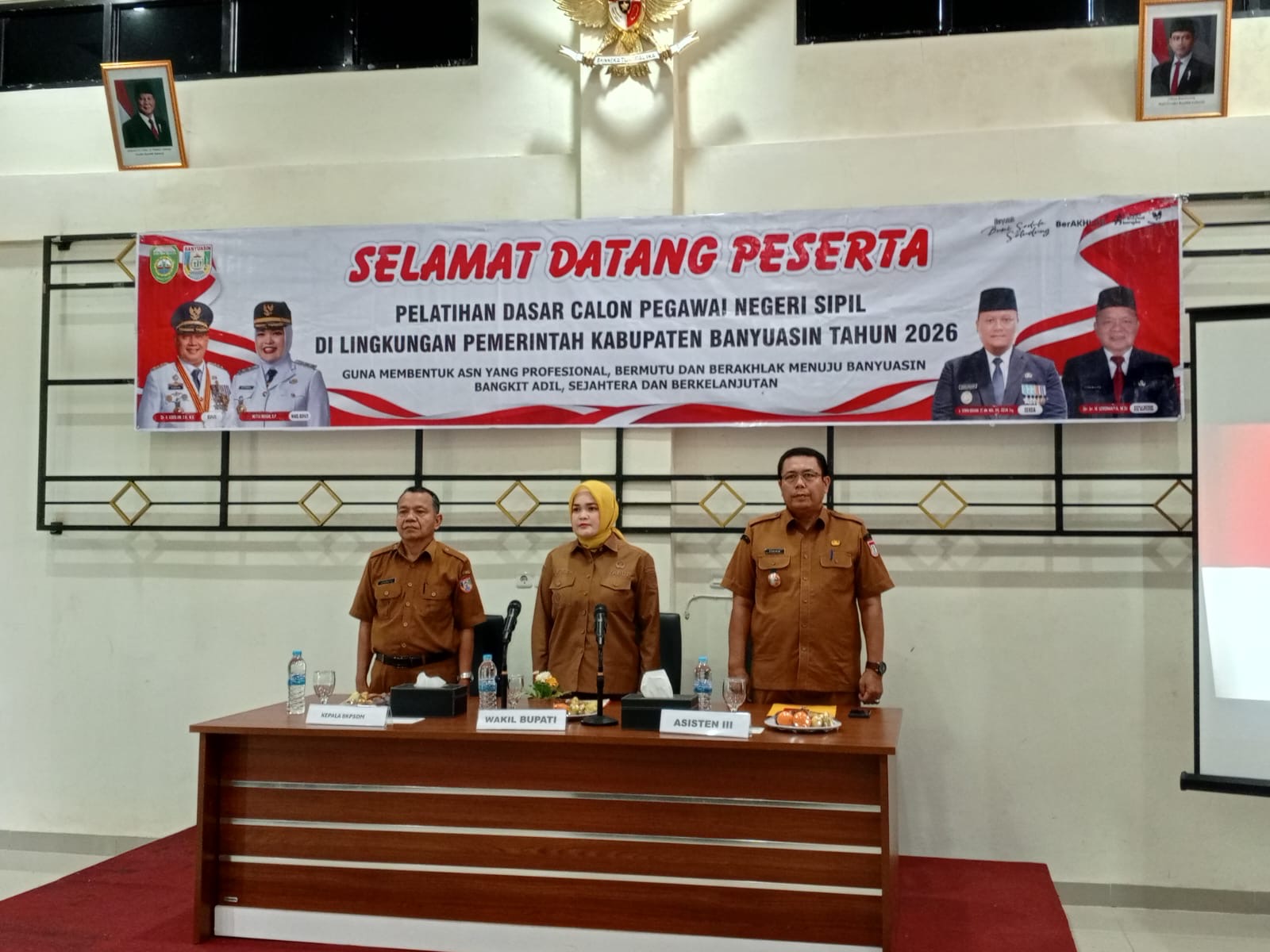 Wakil Bupati Banyuasin Netta Indian S.P, secara resmi menutup Pelatihan Dasar (Latsar) Calon Pegawai Negeri Sipil (CPNS), di lingkungan Pemerintah Kabupaten Banyuasin untuk Angkatan XI-XIV tahun 2026. Acara yang berlangsung secara khidmat .