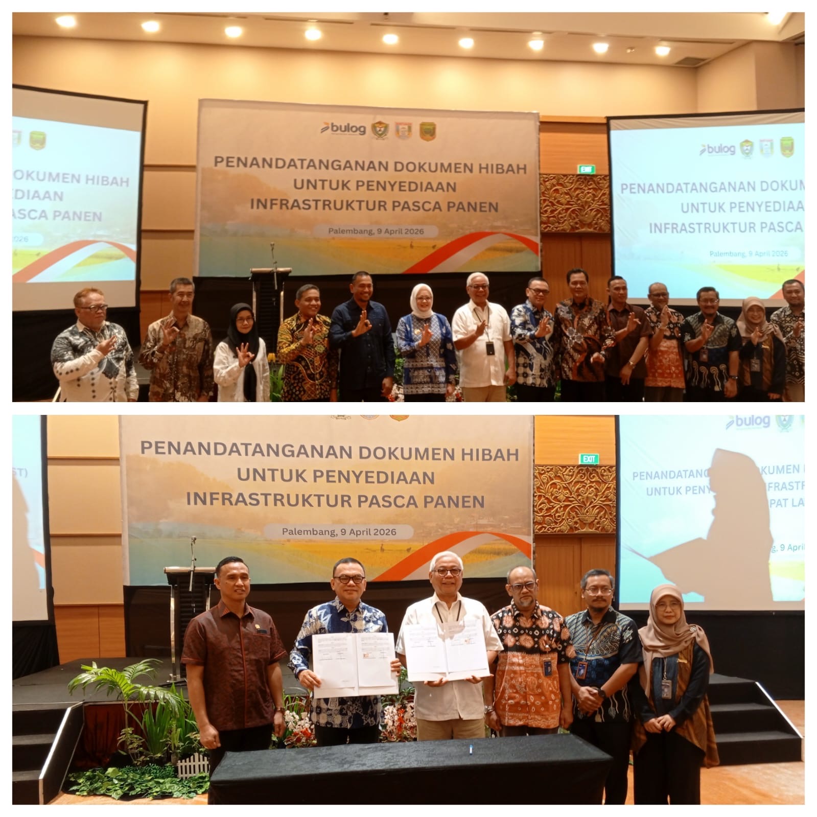 Palembang, sumselsembilan.id — Komitmen memperkuat ketahanan pangan nasional kian nyata. Perum Bulog bersama pemerintah daerah di Sumatera Selatan resmi menandatangani dokumen hibah lahan untuk percepatan pembangunan infrastruktur pasca panen, Kamis (9/4/2026).