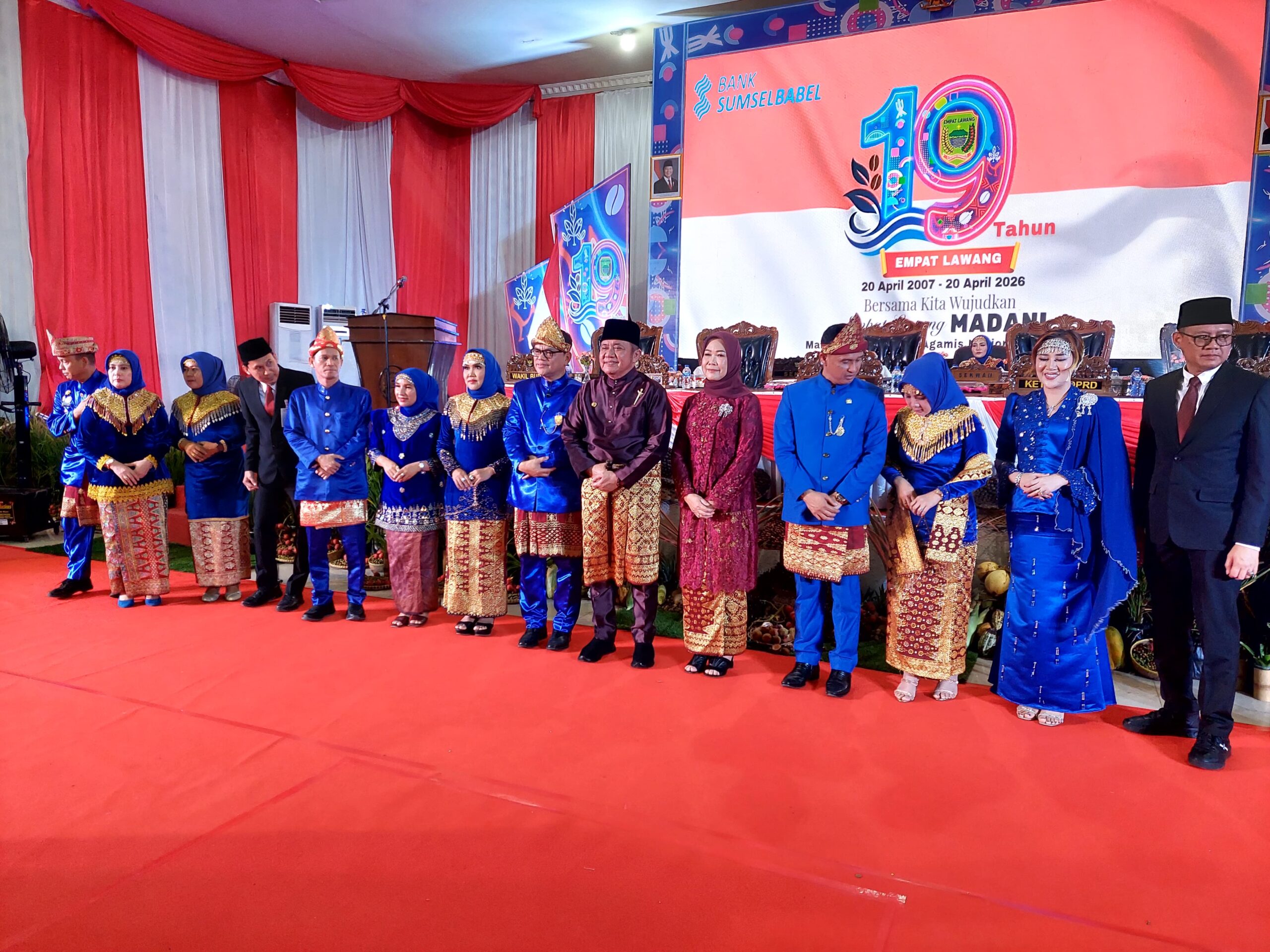 TEBING TINGGI, sumselsembilan.id — Walaupun anggaran relatif kecil ditambah lagi adanya kebijakan efisiensi, namun pembangun di Kabupaten Empat Lawang terus bergeliat. Gubernur Sumsel H Herman Deru menyatakan sangat mengapresiasi hal itu, dan disinilah dibutuhkan kecerdasan dalam menentukan skala prioritas. ”Saya sangat mengapresiasi pembangunan yang sangat dinamis di Kabupaten Empat Lawang, walaupun kondisi keuangan yang kurang mendukung,’ tegas gubernur dalam sambutanya di acara peringatan Hari Jadi Kabupaten Empat Lawang, Senin (20/4), di Gedung Serbaguna, Kota Tebing Tinngi. Selain gubernur, acara Hari Jadi ke 19 diperingati melalui rapat paripurna DPRD Kabupaten Empat Lawang dipimpin Ketua DPRD, Darli, SH, MH, juga dihadiri para sesepuh dan tokoh masyarakat, mantan bupati, forkompimda, perwakilan bupati dan walikota se-Sumsel, kelala OPD, kepala desa, dan ratusan tamu undangan lainnya.